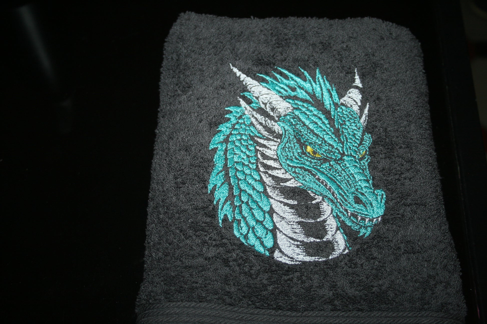 Ajoutez une touche de force et de mystère à votre quotidien avec cette serviette en coton noir de qualité, ornée d’une broderie spectaculaire représentant un dragon majestueux. Ses écailles vertes et ses yeux jaunes flamboyants en font une pièce unique, parfaite pour les amateurs de fantasy et de créatures mythiques.