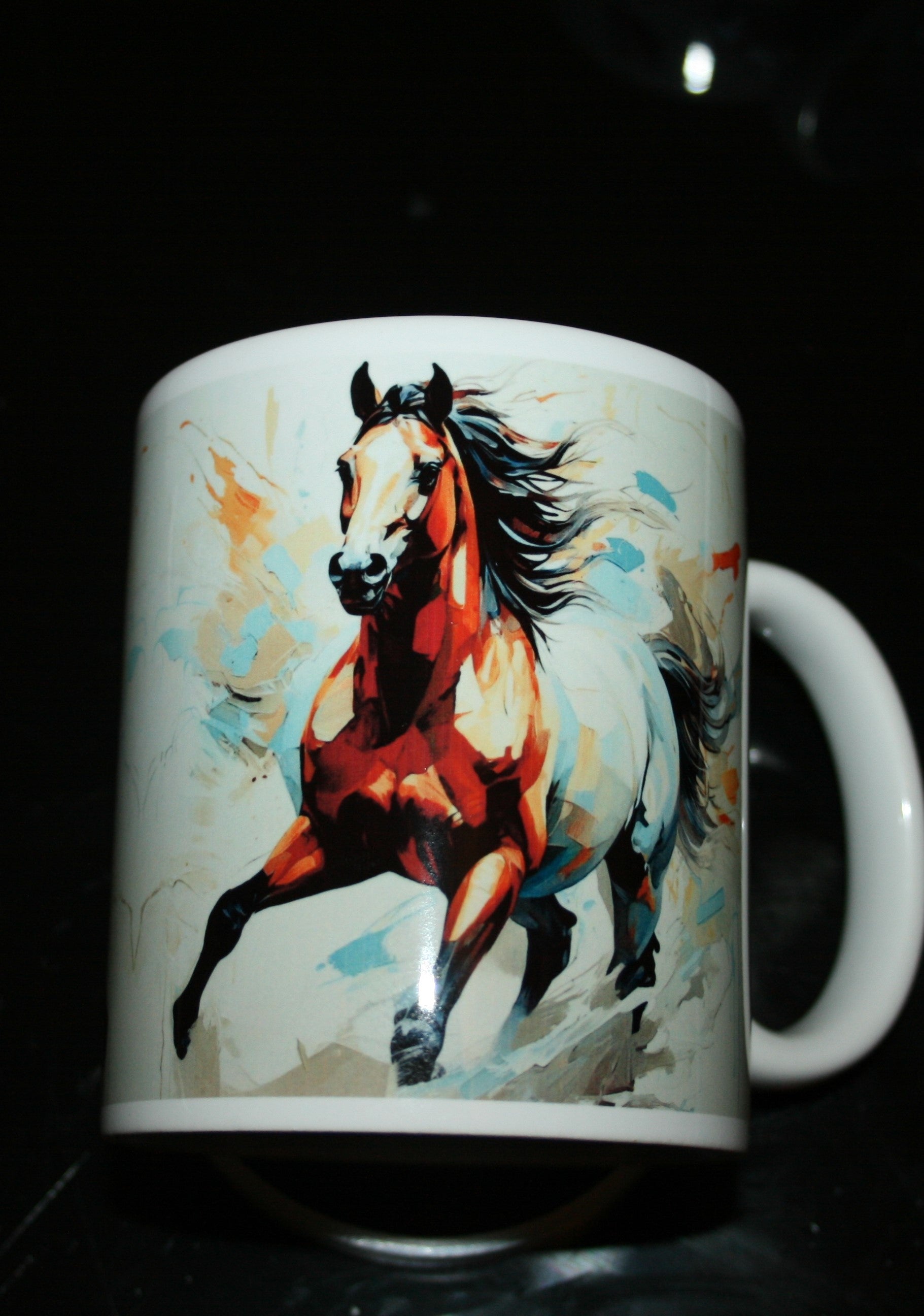 Un design artistique et inspirant, idéal pour les amoureux des chevaux ou ceux qui souhaitent commencer leur journée avec vitalité et détermination.